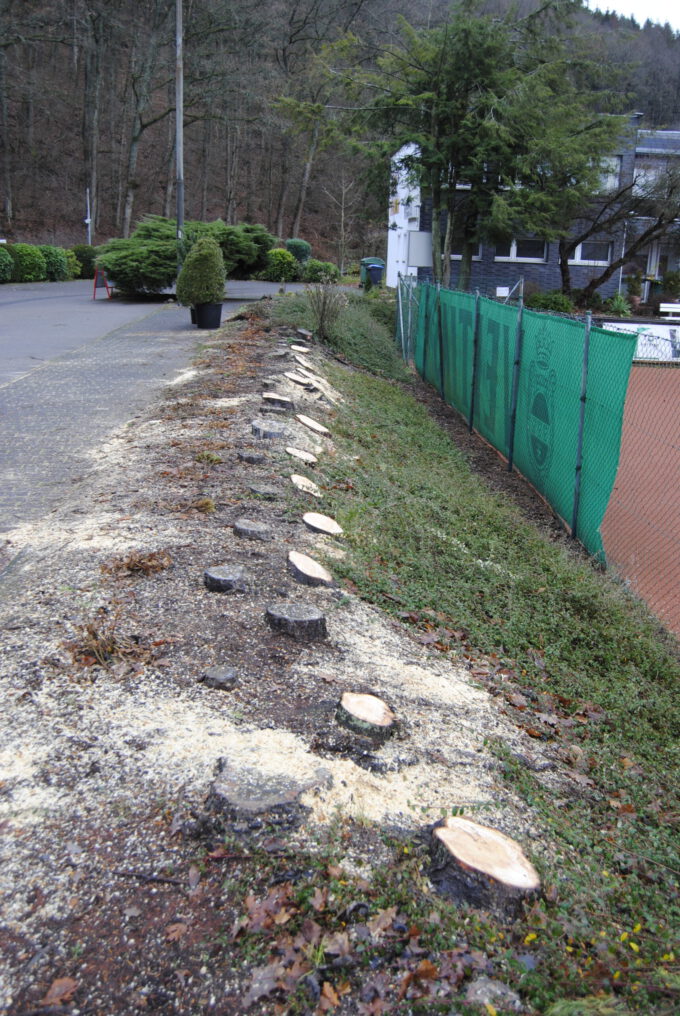 TC-Centercourt jetzt wieder „baumfrei“ Unser Anlagenbetreuer Burkhard Garth hat in diesen Tagen gemeinsam mit dem Landschaftsgärtner Mirko die vom Borkenkäfer befallenen Tannen oberhalb des M-Platzes gefällt und entsorgt. Der Verein bedankt sich ausdrücklich bei den Beteiligten für den nicht einfachen Gemeinschaftseinsatz und freut sich auf schöne Spiele in der kommenden Freiluftsaison.