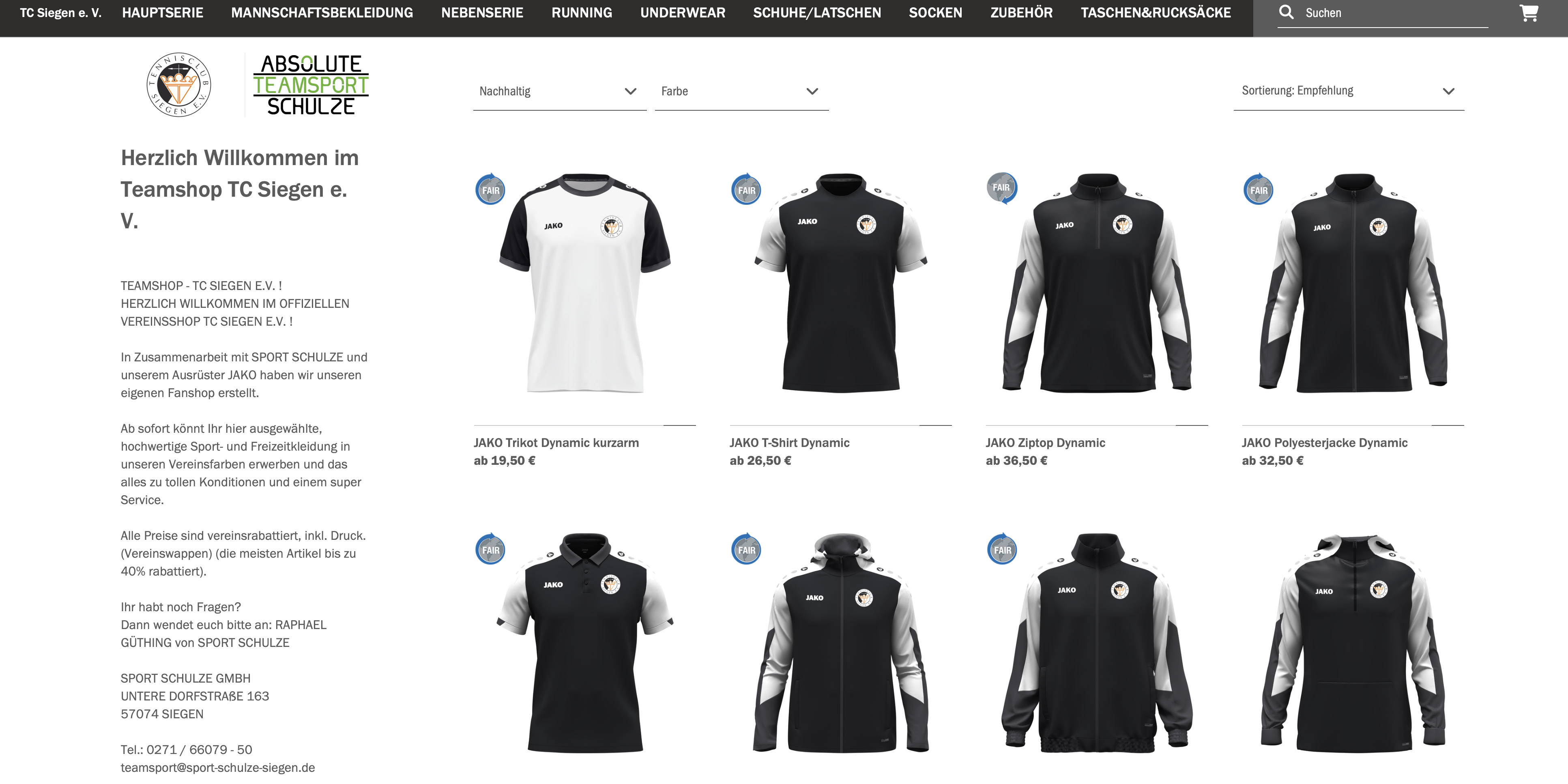 Endlich ist es soweit: Unser offizieller Merch-Shop ist live! Ab sofort könnt ihr Vereins-Artikel wie Shirts, Hoodies, Taschen und Accessoires online bestellen – direkt mit dem Logo unseres TC Siegen. Ganz gleich, ob auf dem Platz, in der Freizeit oder beim nächsten Heimspiel.
